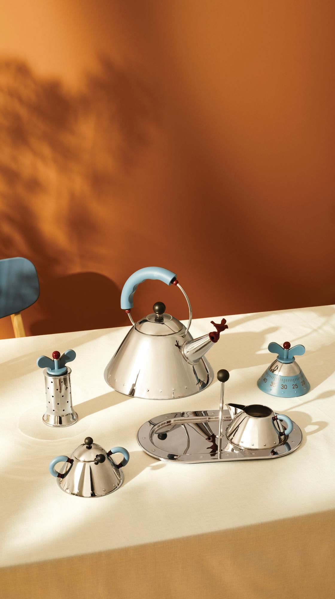Vuonna 1985 Michael Gravesin suunnittelema 9093-vesipannu on yksi Alessin myydyimmistä tuotteista maailmassa ja todellinen designklassikko. Muotoilussa yhdistyvät eurooppalaisen taiteen, amerikkalaisen pop-kulttuurin ja esikolumbiaanisten kulttuurien vaikutteet. Pannu on valmistettu kiiltävästä 18/10-ruostumattomasta teräksestä, ja sen vaaleansininen kahva sekä ikoninen linnun muotoinen pilli tuovat kokonaisuuteen leikkisyyttä – pilli viheltää veden kiehuessa ja saa väistämättä hymyn huulille. Magneettinen teräspohja sopii kaikille liesille, myös induktiolle.