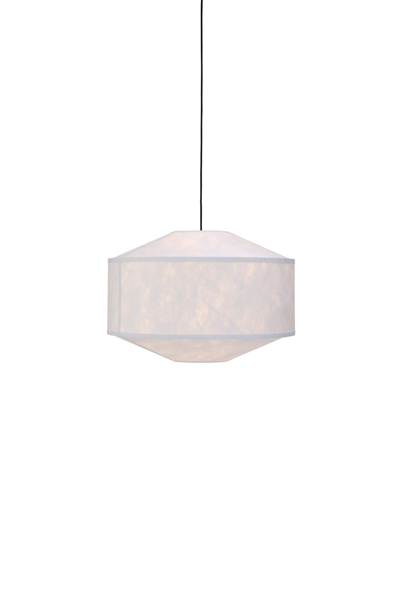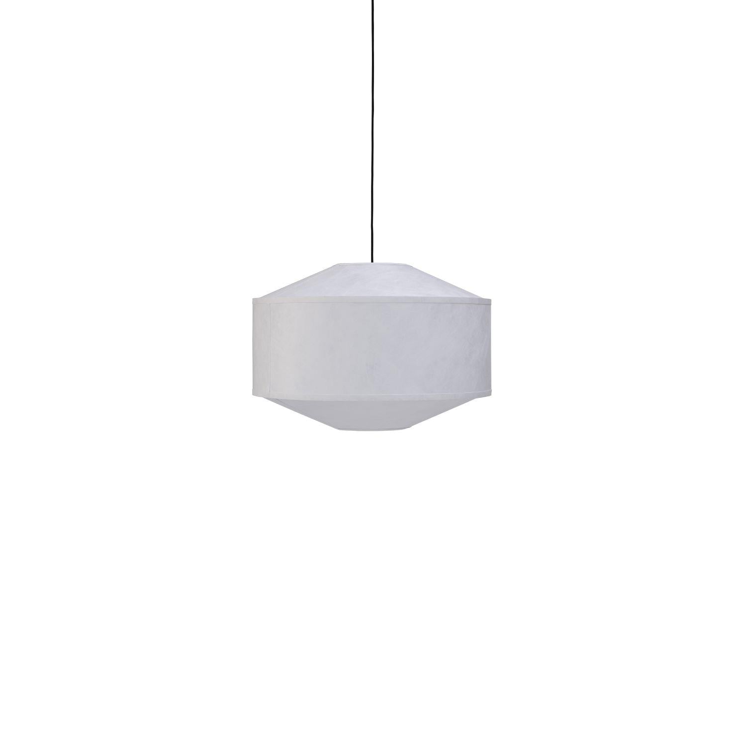 Varjostin on valmistettu Tyvek®-kankaasta – ohuesta, läpikuultavasta ja kevyestä materiaalista, joka levittää valon pehmeästi ja tasaisesti. Kun valaisin syttyy, sen pinta herää eloon ja taitosten rytmi muodostaa hillityn, rauhallisen kuvion.