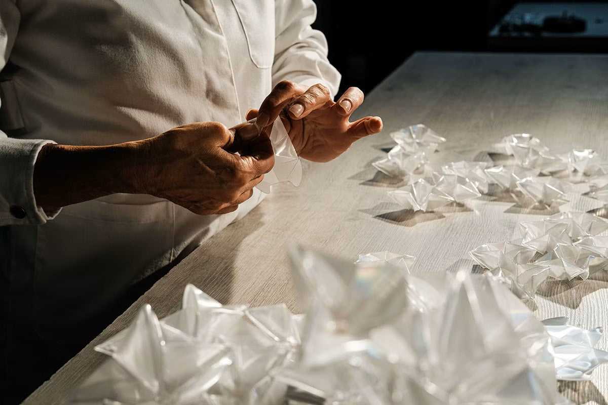 Cristalflex® on läpinäkyvä teknopolymeeri, joka yhdistää kristallin kirkkauden ja polykarbonaatin keveyden, joustavuuden ja iskunkestävyyden. Sen optiset ominaisuudet mahdollistavat valon kauniin taittumisen ja heijastumisen, mikä tekee siitä ihanteellisen materiaalin näyttäville valaisimille.