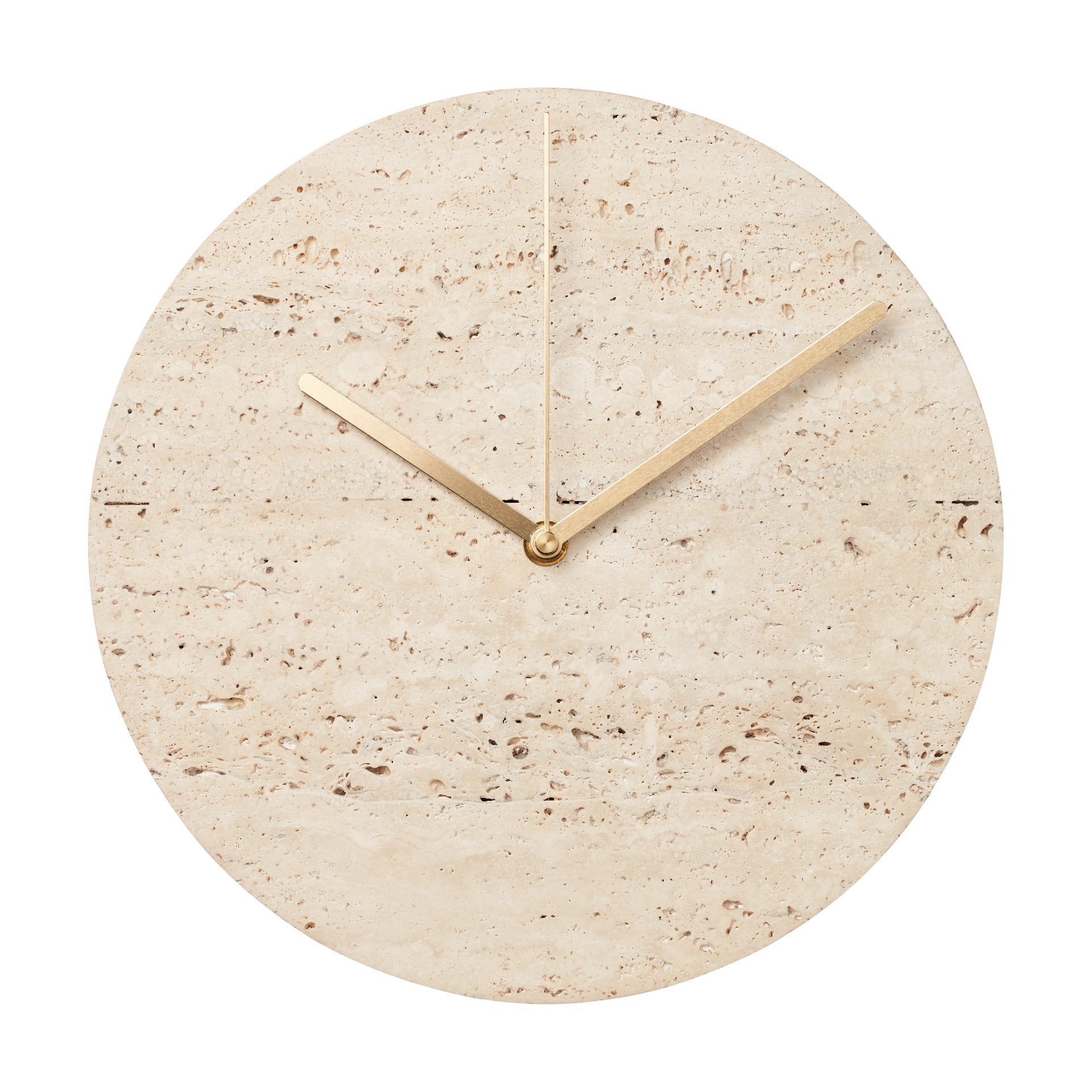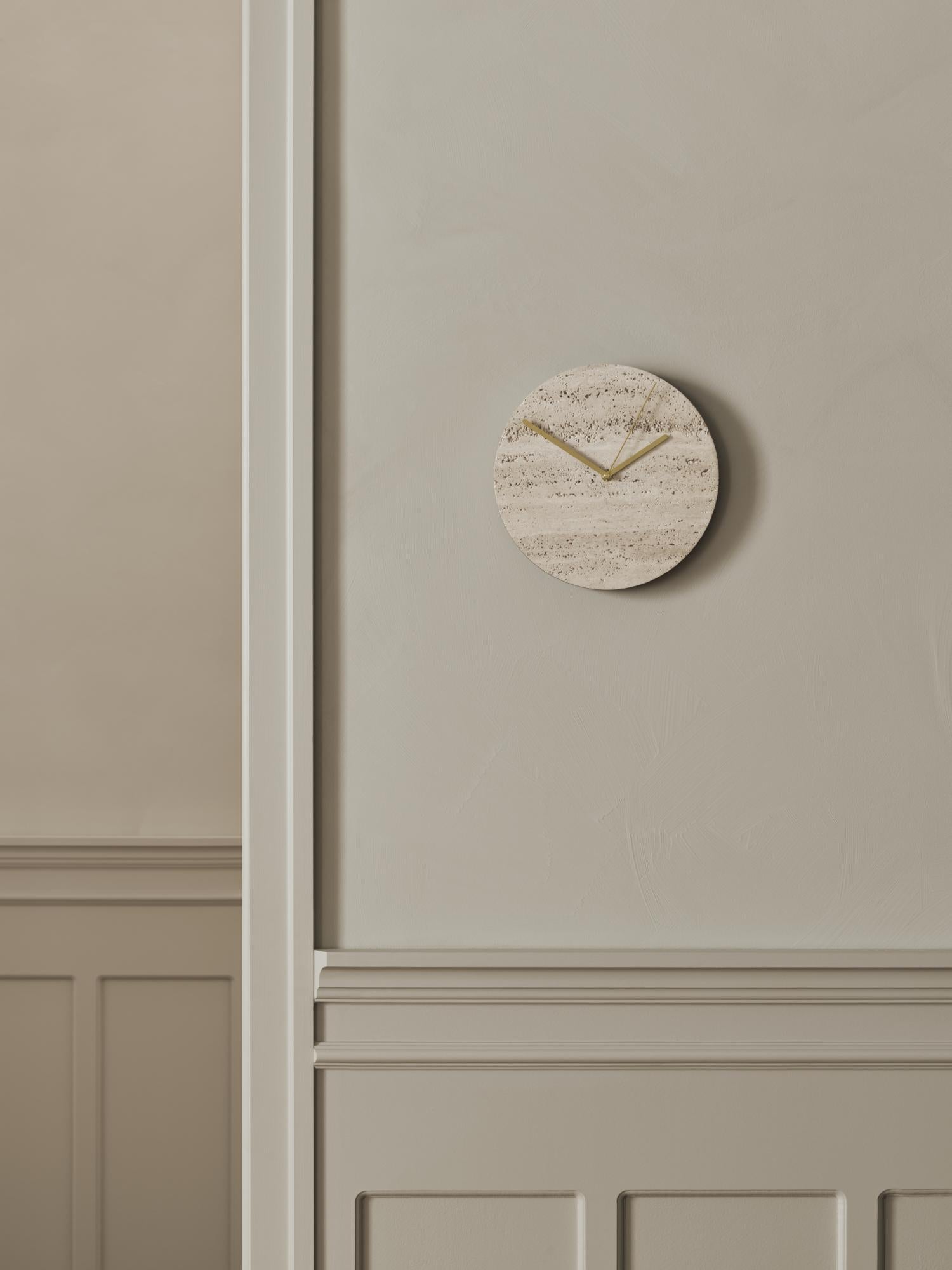 Bolia Tima on enemmän kuin pelkkä ajan näyttäjä; se on seinällesi nostettu veistos, joka huokuu rauhaa ja luonnonläheistä arvokkuutta. Martin Lauritsenin suunnittelema kello yhdistää taidokkaasti lämpimän tammiviilun ja aidon travertiinin, luoden elävän pinnan, joka vangitsee katseen olematta liian hallitseva.