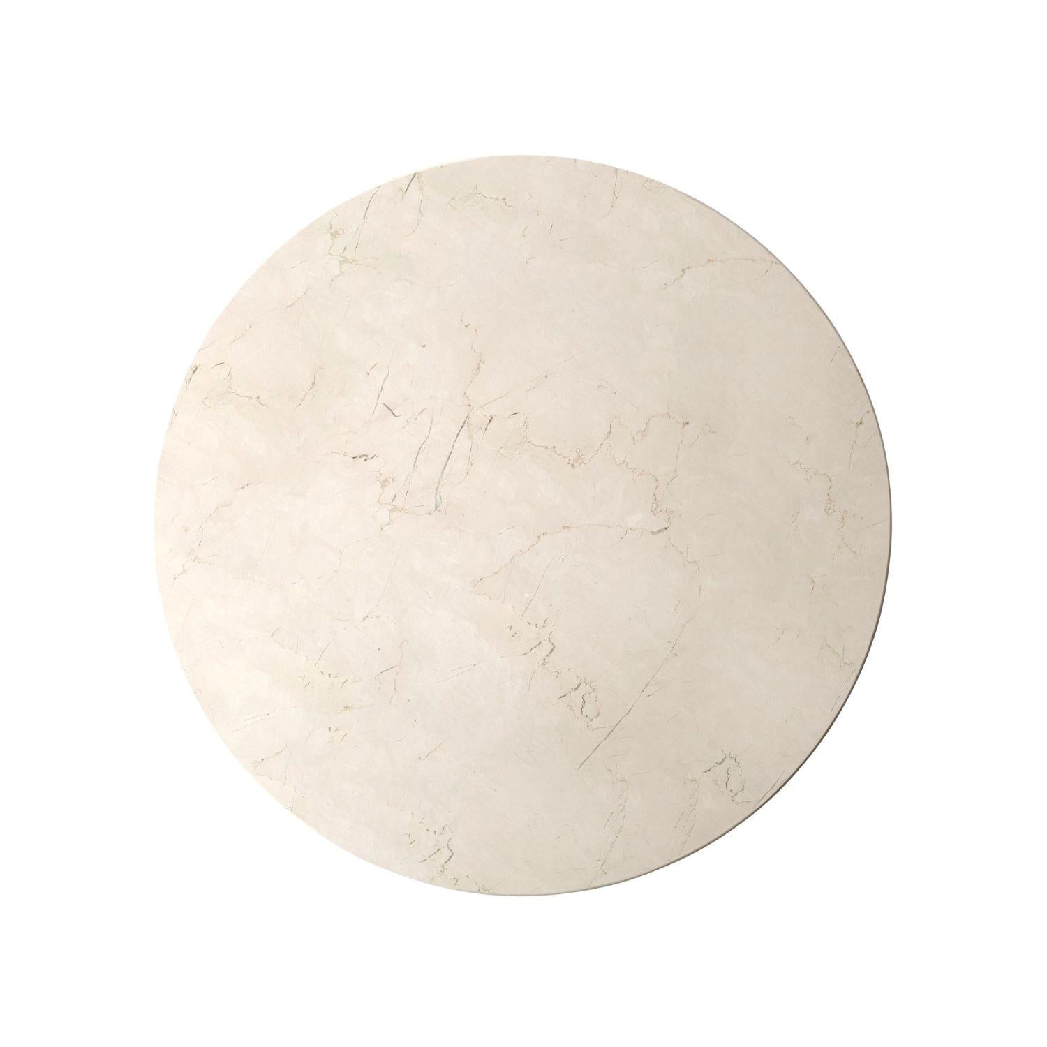 Audo Copenhagenin Androgyne-pöytälevy yhdistettynä teräsjalkaan tuo tilaan sekä eleganssia että selkeää geometriaa. Pyöreä, eläväpintainen marmori ja jauhemaalatusta teräksestä valmistettu jalka muodostavat harkitun ja ajattoman kokonaisuuden. Eri marmori- ja runkovaihtoehtojen ansiosta pöydän ilmeen voi sovittaa helposti omaan sisustustyyliin – valitse mieleisesi yhdistelmä ja lisää kotiin hienovarainen, mutta erottuva design-elementti.