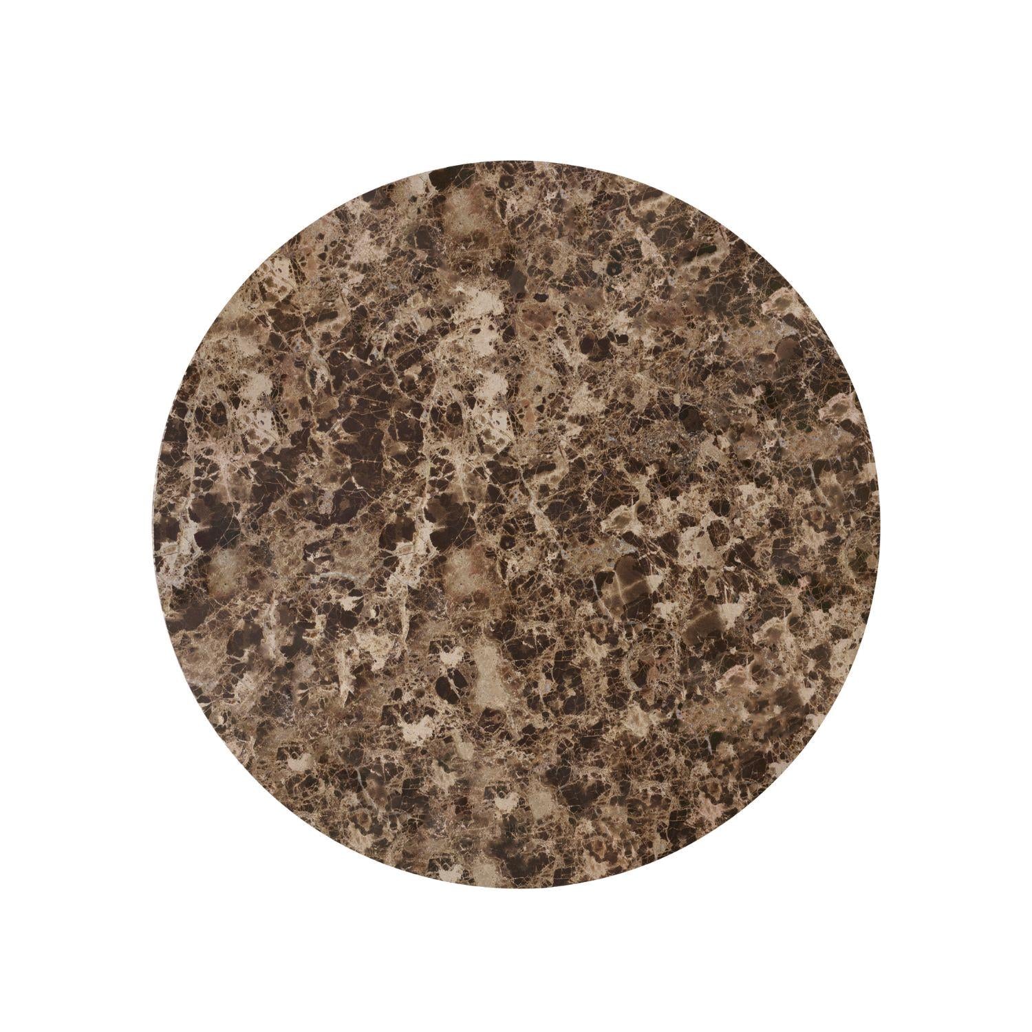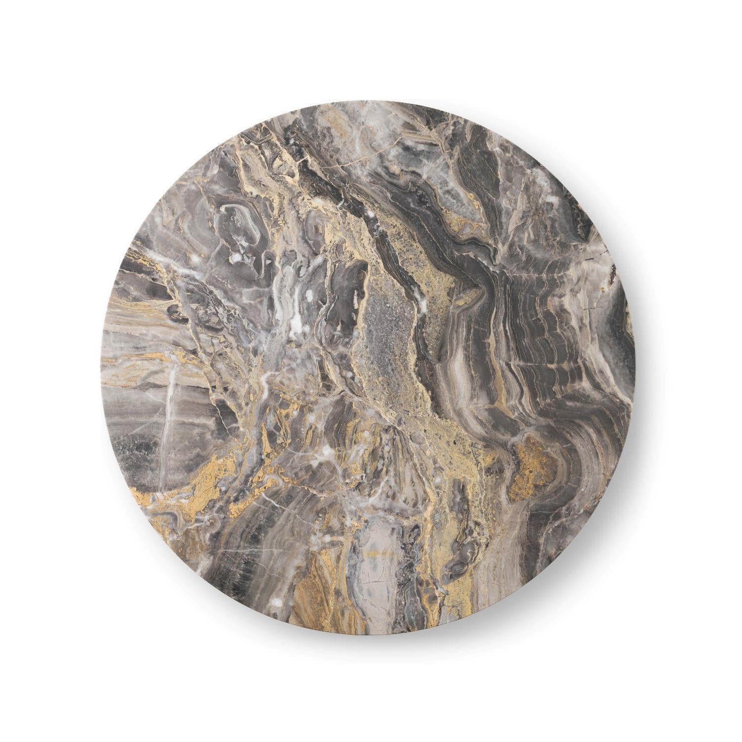 Marmorikansi tuo pöytään ylellisyyttä ja rauhallisuutta. Kiven luonnollinen pinta ja metallin selkeys täydentävät toisiaan, mikä tekee kokonaisuudesta yhtä aikaa harmonisen ja näyttävän. Pöydän kansi sopii yhteen halkaisijaltaan Ø63 Androgyne sohvapöydän kanssa, joka toimii erinomaisesti pienempänä sohva- tai sivupöytänä. Selkeälinjainen muotoilu tekee siitä helpon sijoittaa moneen eri tilaan ja rooliin.