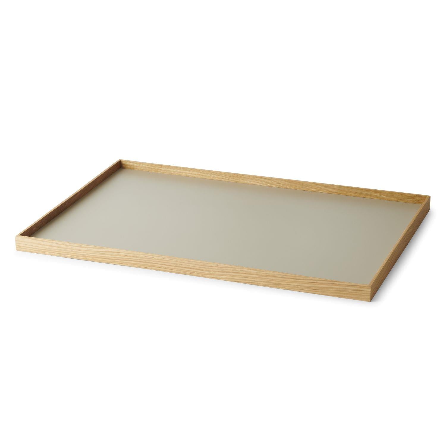 Gejst Frame on selkeälinjainen ja ajaton tarjotin, jossa yhdistyvät maalatun MDF-pinnan pelkistetty ilme ja tammen lämmin sävy. Iso koko tekee siitä monikäyttöisen – se toimii tarjoilussa, keittiön tai olohuoneen järjestyksen apuna tai sisustusesineiden alustana.