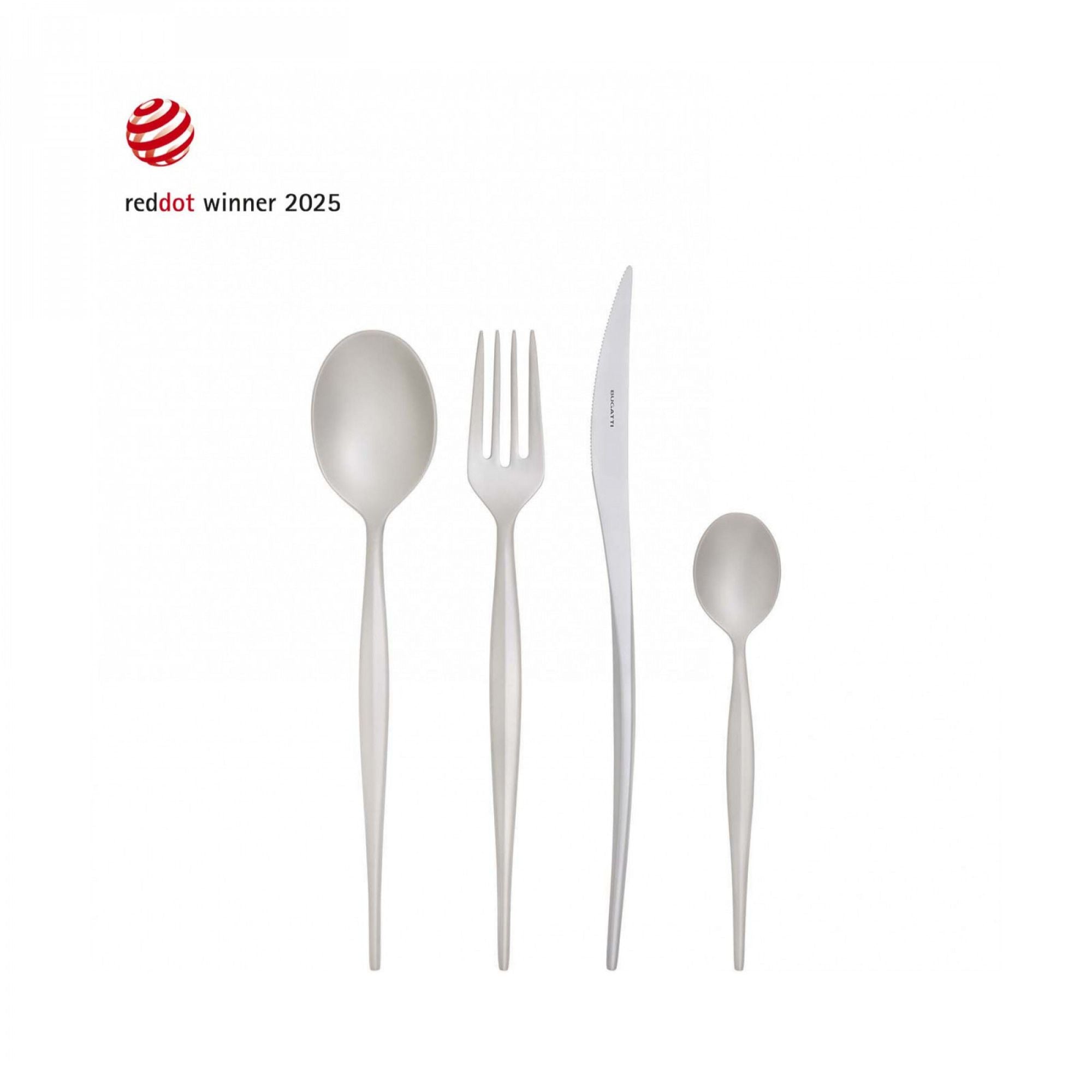 Casa Bugattin Natura-ruokailuvälinesarja yhdistää italialaisen designin hienostuneisuuden ja luonnon kauneudesta ammentavan estetiikan. Sarjan ruokailuvälineet on suunniteltu tuomaan tyylikkyyttä ja harmoniaa ruokailuhetkiin – olipa kyseessä arjen illallinen tai juhlavampi kattaus.