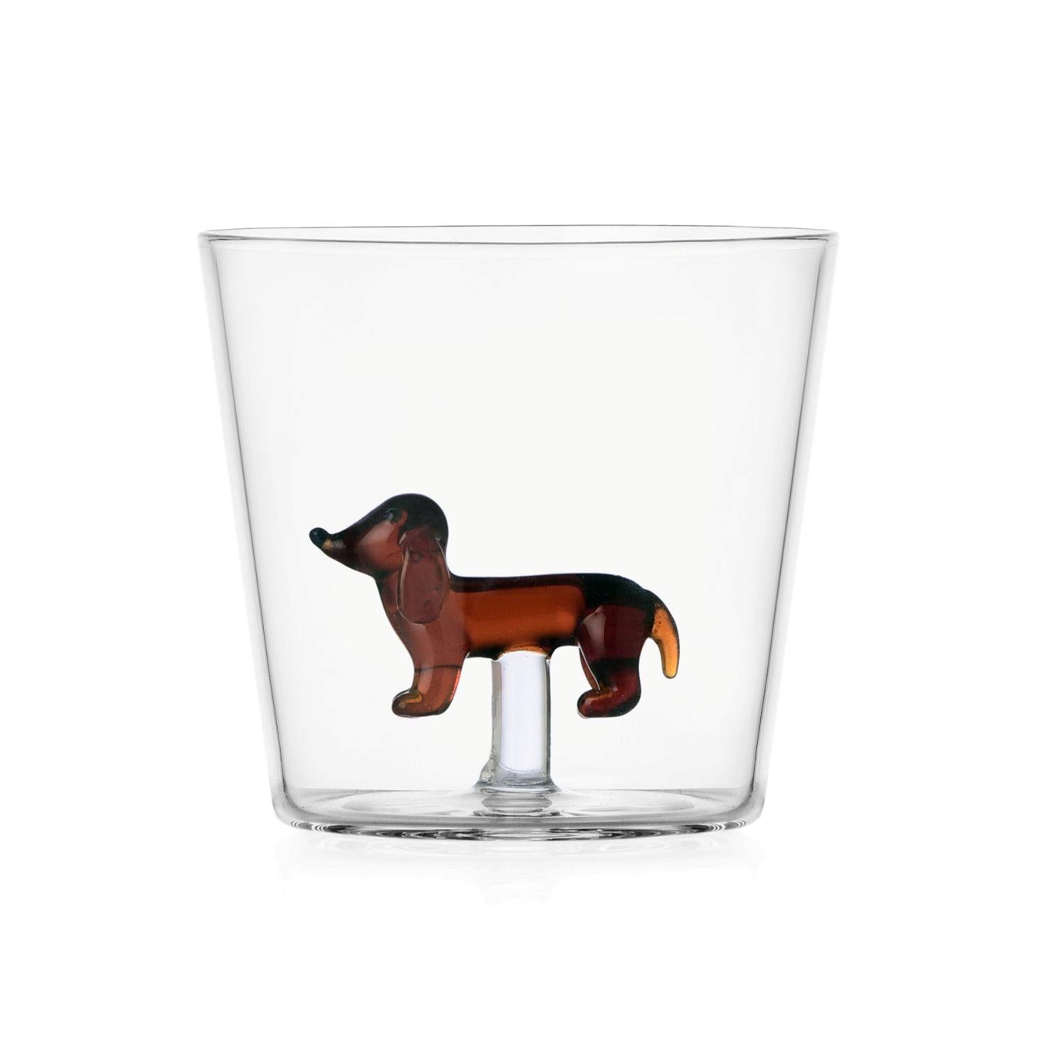 Ichendorf Milanon käsintehty borosilikaattilasista valmistettu juomalasi, jonka sisällä on pieni lasinen mäyräkoira. Alessandra Baldereschin suunnittelema lasi yhdistää italialaisen muotoilun ja leikkisän yksityiskohdan, joka tuo kattaukseen satumaista tunnelmaa. Kevyt ja kestävä lasi sopii arjen käyttöön ja juhlapöytään, ja se kestää pesun astianpesukoneessa matalassa lämpötilassa. Tämä kaunis lasi on myös oivallinen lahja designin ystävälle.