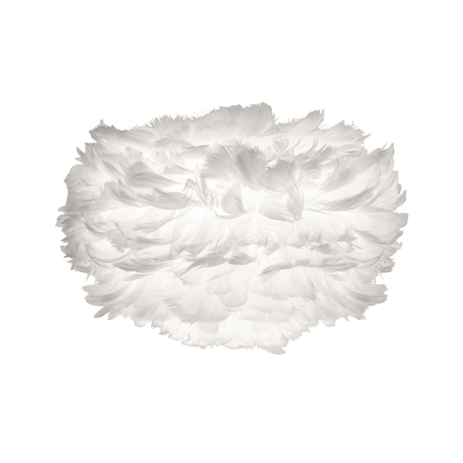 Valaisimen varjostin on valmistettu käsin asetelluista, aidosta hanhenhöyhenistä, jotka tuovat tähän design-valaisimeen pehmeyttä ja luonnollisuutta. Eettisesti hankitut höyhenet heijastavat valoa kauniisti, luoden valaisimelle sen lämpimän ja kutsuvan tunnelman. Tässä valaisimessa on valkoinen medium-kokoinen varjostin ja valkoinen johtosarja, jotka myydään yhdessä.