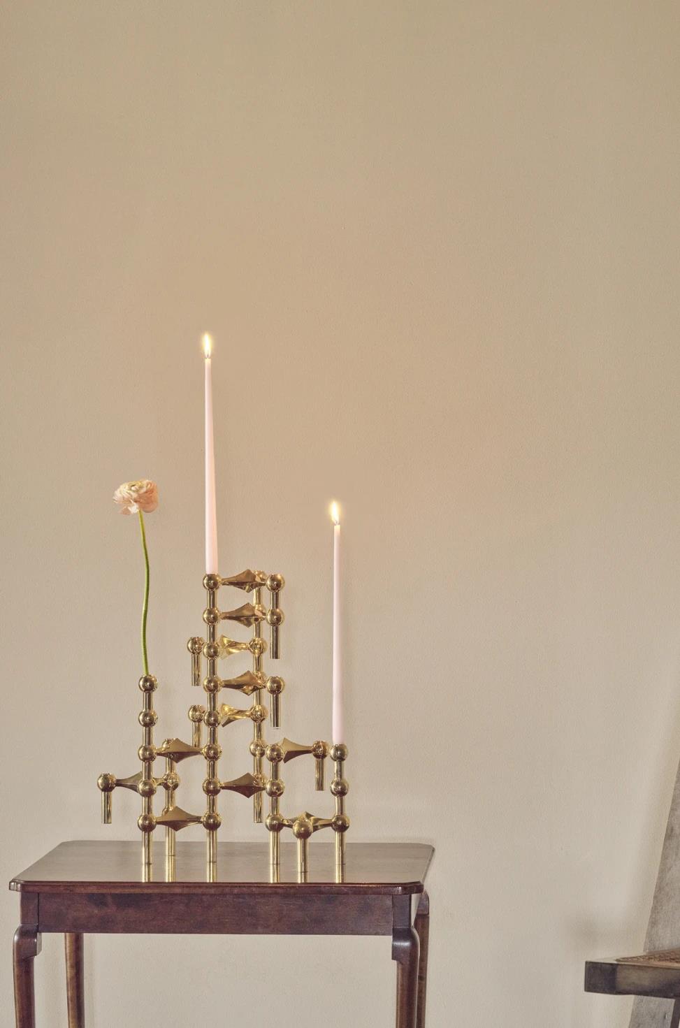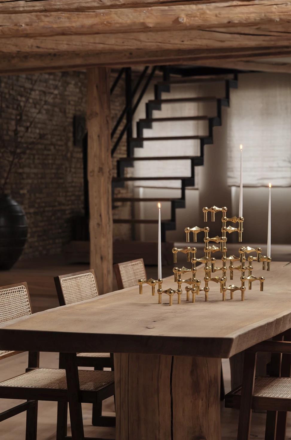 Messinkinen kolmikko toimii sekä näyttävänä sisustusesineenä että kruunukynttilöiden kanssa, ja sen lämmin sävy lisää tilaan pehmeää, ylellistä hehkua. Setti on oivallinen lahja designin ystävälle ja harkittu tapa aloittaa oma STOFF Nagel -kokoelma, joka säilyttää arvonsa ja viehättävyytensä vuosikymmeniä.