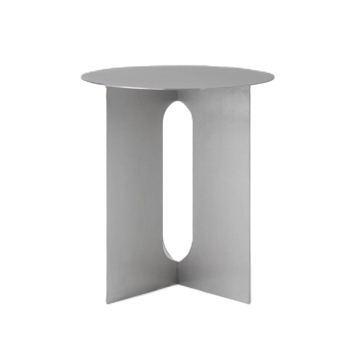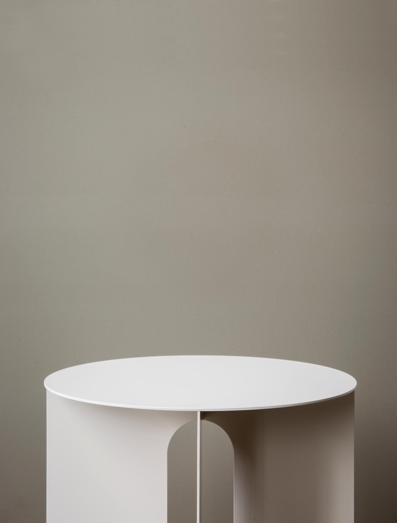 Audo Copenhagenin Androgyne-sivupöytä erottuu pelkistetyllä muotoilullaan. Jauhemaalatusta teräksestä valmistetussa rungossa yhdistyvät pyöristetyt kaaret ja suorat linjat - piirre, josta koko Androgyne-sarja tunnetaan. Danielle Siggerud suunnitteli pöydän alun perin Menu Spacen kahvilaan Kööpenhaminaan, mutta sen selkeä ja monikäyttöinen muoto teki siitä nopeasti osan Audo Copenhagenin pysyvää mallistoa.