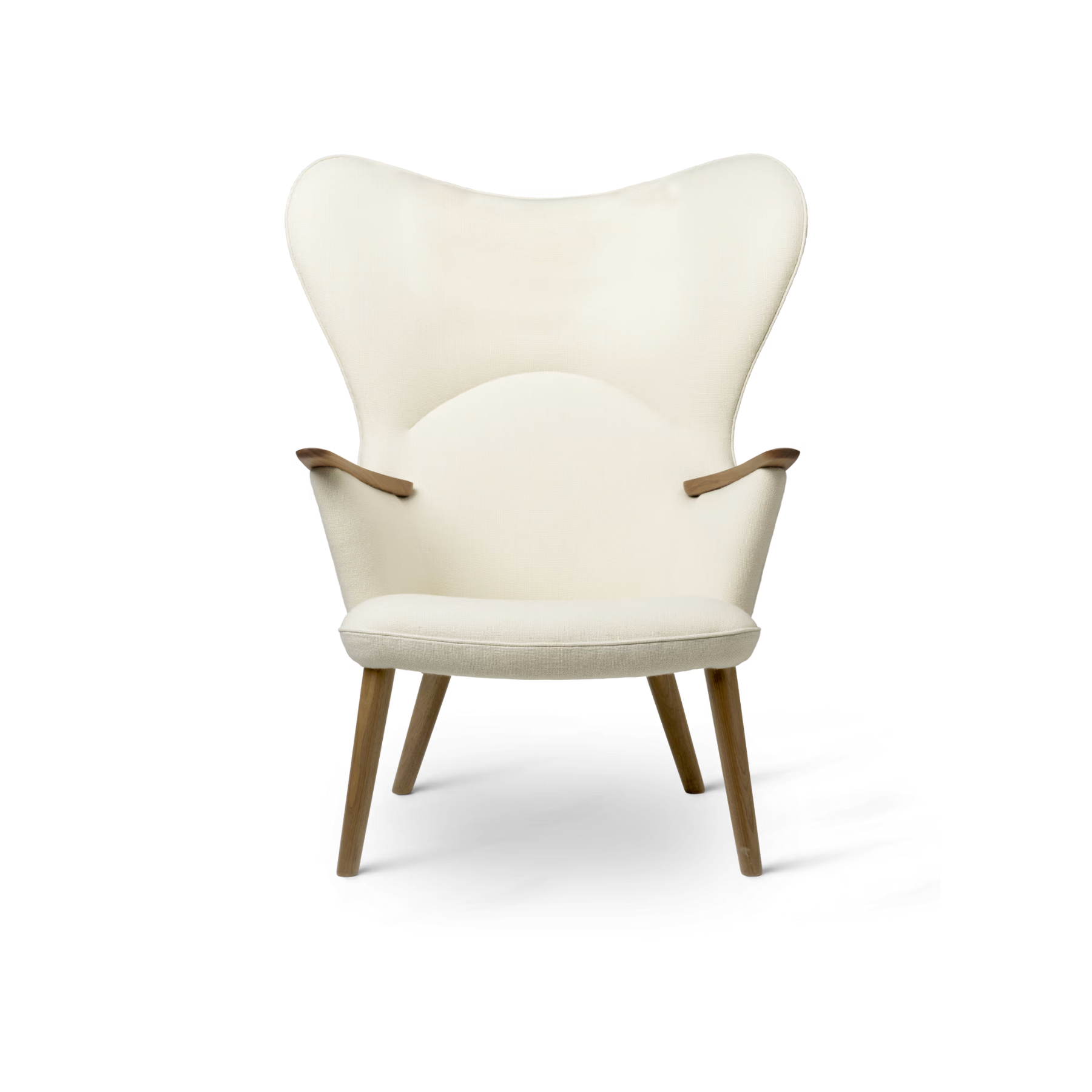 Hans J. Wegnerin suunnittelema hellästi nimetty CH78 Mama Bear -nojatuoli on tyylikäs klassikko. Vuonna 1954 tanskalainen muotoilija Hans J. Wegner esitteli CH78 Mama Bear -nojatuolin, joka tunnetaan sen kevyestä ja veistoksellisesta muotoilusta. Tämä nojatuoli yhdistää pehmeät, tukevat kaaret ja dynaamiset geometriset muodot tarjoten ergonomista mukavuutta niin selälle kuin niskalle. Sen runko on valmistettu massiivisesta FSC™-sertifioidusta tammesta tai pähkinäpuusta, ja verhoiluvaihtoehtoina on laadukkaita villakankaita eri väreissä. Lisäksi tuoliin on saatavilla irrotettava niskatyyny, joka lisää istuinmukavuutta entisestään.