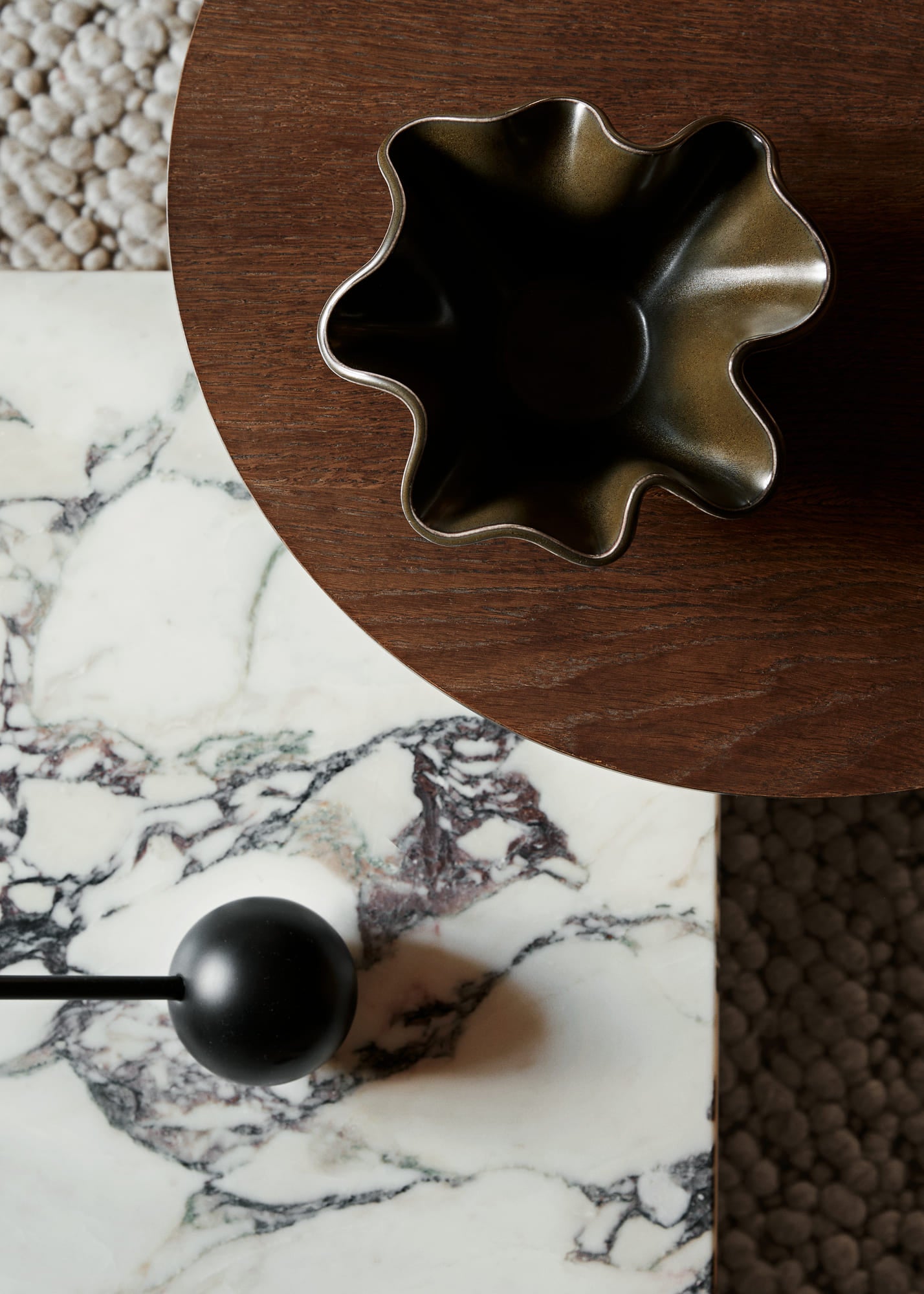 Audo Copenhagenin näyttävä Plinth Low sohvapöytä sopii täydellisesti moderniin olohuoneeseen. Tässä pöydässä marmorin kaunis kuviointi korostuu veistoksellisessa muodossa ja luo tilaan modernia tyylikkyyttä. Sen yksinkertainen, mutta vaikuttava muotoilu tarjoaa kestävyyttä ja ajatonta kauneutta, joka säilyttää arvonsa vuosien läpi. Pöytä on saatavilla eri marmorivaihtoehdoissa, muun muassa tyylikkäänä Brecciana tai ylellisenä Kenzona.