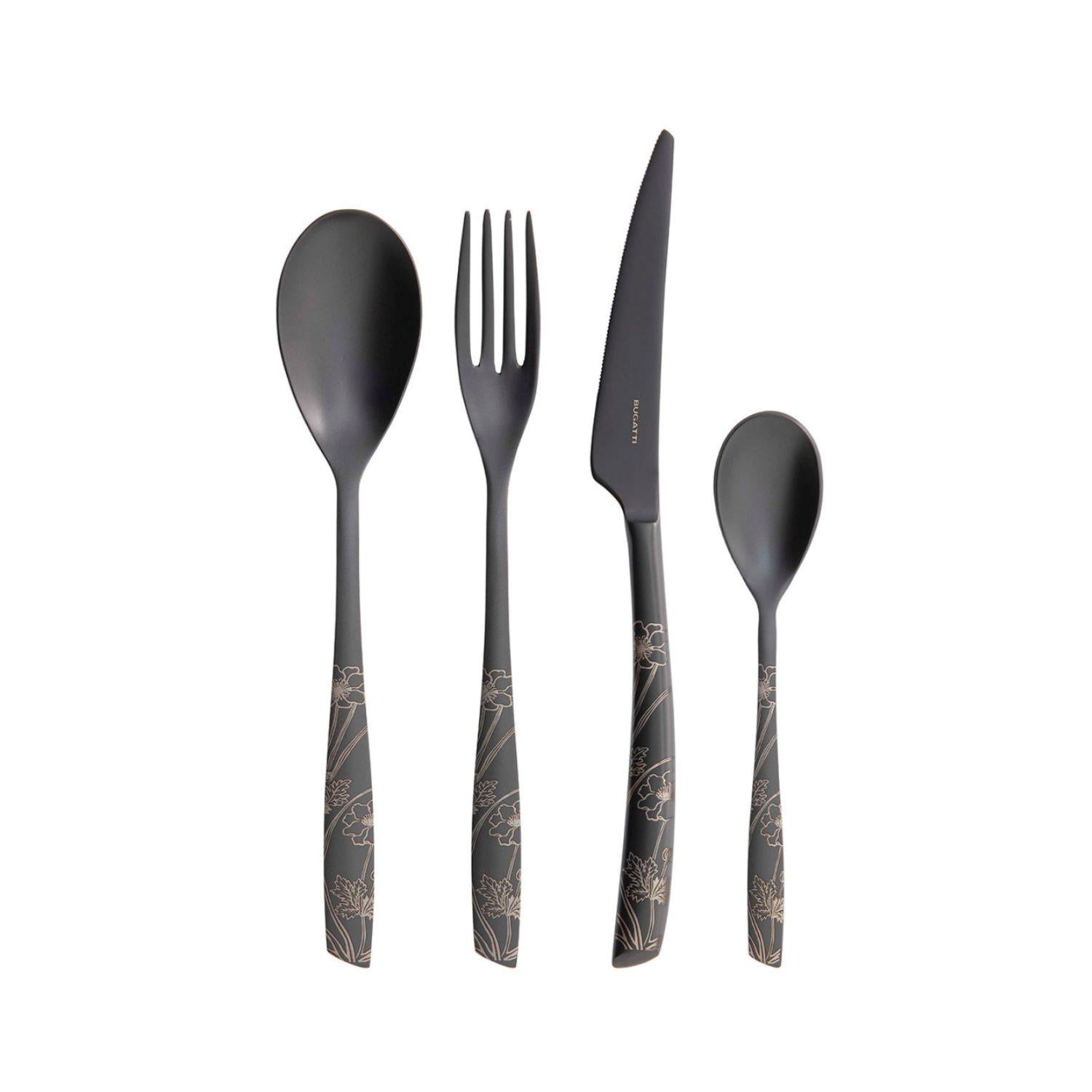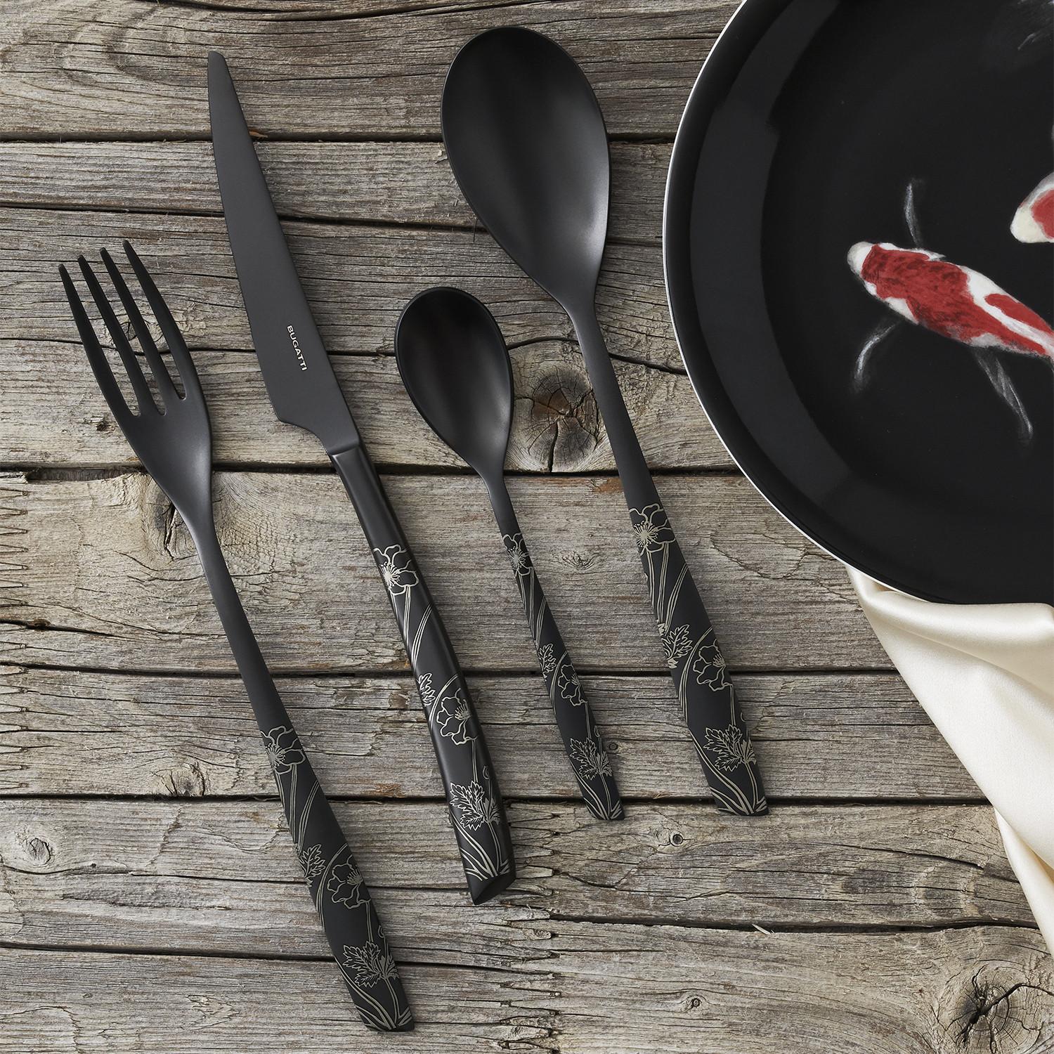 Settiin kuuluvat ruokalusikat, ruokahaarukat, ruokaveitset sekä jälkiruokalusikat. Tarjoilu- ja erikoisvälineet saatavilla erikseen.