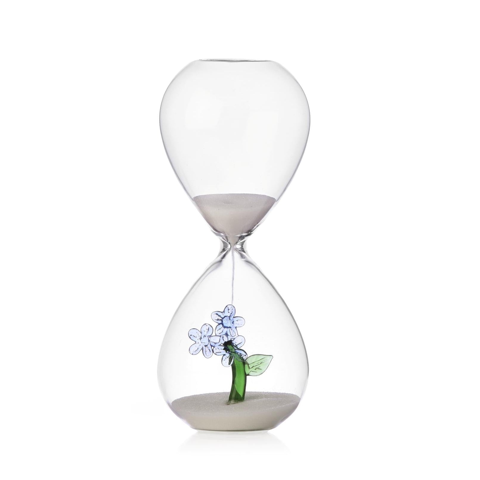 Tämä Christmas Edition -sarjan tiimalasi on kevyt ja herkkä lasiesine, jonka sisälle on muotoiltu vaaleansininen kukka. Kukka on tehty käsin, joten sen sävy ja muoto vaihtelevat hieman kappaleesta toiseen.