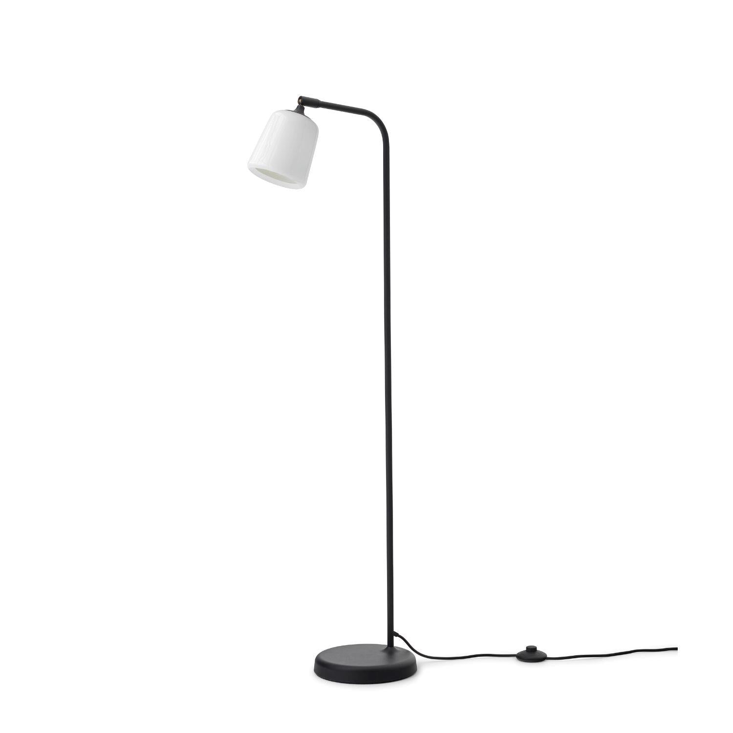 Material-lattiavalaisin edustaa New Worksin tunnistettavaa, pelkistettyä muotokieltä. Valkoisesta opaalilasista valmistettu varjostin suodattaa valon pehmeästi ja tasaisesti, luoden miellyttävän ja rauhallisen valaistuksen.